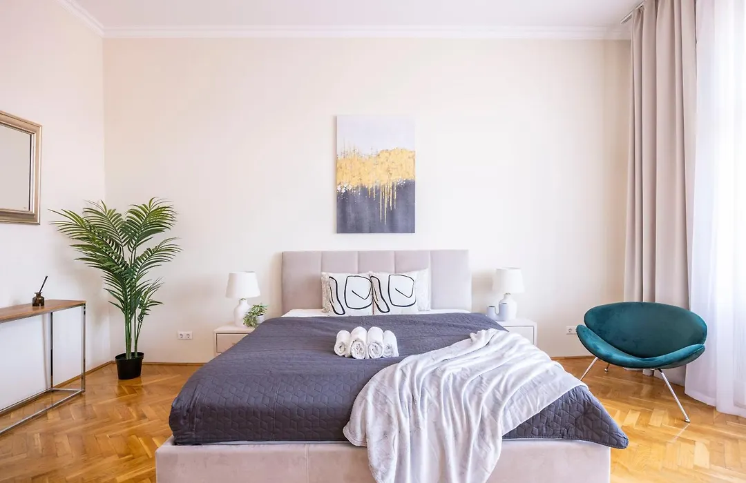Exclusive & Cozy Central Suite W' Balcony Budapest spacieux est situé à moins de 16 minutes à pied des Chaussures sur le Danube et à moins de 14 minutes de marche du Parlement de Budapest. En séjournant dans le domicile de 89 m², niché à une courte distance de l'Opéra d'État hongrois, les clients peuvent se détendre sur une terrasse.